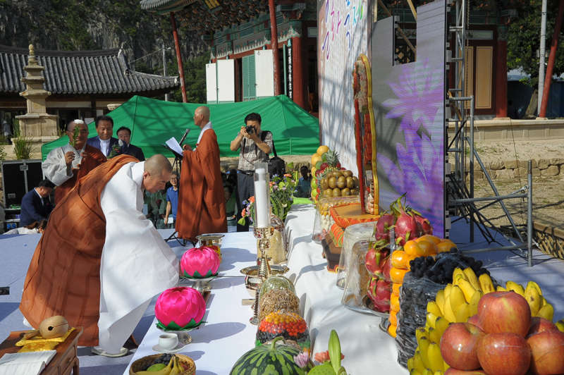 군위 인각사는 지난 18일 경내 극락전 앞 광장 인각사 특별무대에서 500여 명의 사부대중이 참석한 가운데 보각국존 일연선사 제 729주기 다례재를 봉행했다. 일연학연구원이 주관하고 인각사가 주최한 이날 다례재는 우리민족의 정신문화를 집대성한 삼국유사의 저자 일연스님을 추모하고 민족문화전통을 계승하기 위해 총무원 문화부, 제10교구본사 은해사, 경상북도 등이 후원한 가운데 매년 열리고 있다. 육법공양과 종사영반으로 시작된 다례재에서 은해사 주지 돈관스님은 법어를 통해 “일연선사는 삼계의 대도사이자 인천의 스승이었다”라며 “일연선사의 제729주기 다례재 및 일연․삼국유사 문화재를 개최하는 것은 일연선사의 높으신 민족사랑과 문화예술정신을 드높여 새롭고 밝은 정신문화를 재정립하는 계기가 될 것으로 확신한다”라고 믿음을 전했다. 이에 앞서 인각사주지 정화스님은 봉행사를 통해 “오늘 일연선사를 기리는 다례재에서 사부대중은 우리 역사상 가장 위대한 정신의 자취를 남기신 일연선사의 수많은 업적, 삼국유사의 빛나는 문화유산 가치를 온 몸으로 느끼며 기쁘고 행복한 시간이 되시기 바란다”라고 말했다. 다례재에는 제10교구본사 은해사 주지 돈관스님, 선본사 주지 법성스님, 김영만 군위군수, 오윤화 인각사신도회장 등 500여명의 사부대중이 참석한 가운데 ‘2018 인각사 일연·삼국유사 문화축전’의 일환으로 진행됐으며, 이날 저녁에는 삼국유사 문화의 밤 행사가 인각사 특별무대에서 대구버꾸춤연구회의 삼국유사 퍼포먼스를 비롯한 인기가수의 공연이 펼쳐졌다.