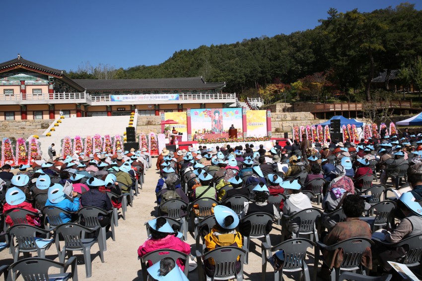 조계종 제10교구본사 은해사는 지난 20일 경내 템플스테이관 앞 특설무대에서 ‘은해사 창건 1209주년 개산대재’와 ‘도․시민이 함께하는 프라이드 경북음악회’를 봉행했다. 은해사는 1209주년 개산대재를 맞아 경내 조사전과 부도전에서 개산조 혜철국사와 역대 조사 스님의 다례재를 봉행하고 이들을 추모했다. 또한 법요식에서 군 포교 활동에 공이 많은 원효암 주지 활안스님을 포함한 3명의 스님과 은해사 발전에 공이 많은 박정옥 은해사신도회 총무국장 등 7명의 공로자들에게 공로패를 전달하며 격려했다. 이어 2부 행사로 열린 ‘도․시민이 함께하는 프라이드 경북음악회’에서는 영천아리랑보존연구회, 명주농악보존회 및 국악인 박명진의 국악공연 등 다양한 장르의 공연을 통해 짙어가는 가을을 더욱 풍성하게 만들었으며 저녁에는 만등 점등식을 봉행했다. 은해사 주지 돈관스님은 봉행사를 통해 “부처님의 가르침을 실천하는 삶을 산다는 것은 곧 우리가 스스로 부처님의 뜻을 알리는 불법홍포의 가장 근본적인 실천”이라며 “은해사는 우리 불자들에게 마음의 근본도량으로 있도록 더욱 더 환희심이 가득한 도량으로 가꾸고 개산조 혜철국사의 개산의 의미를 더욱 더 창달하도록 노력할 것”이라고 말했다. 은해사 회주 법타스님은 법어를 통해 “다른 사람을 평화롭게 하려면 먼저 자기 자신이 평화로워야 한다”라며 “은해사는 실로 이 지역 모든 이들의 안심입명과 귀의처로써 전통문화의 계승 발전에 진력하고 있다”고 설했다. 한편 은해사 개산대재에는 은해사 관장 돈명스님, 원효학원 이사장 정만스님, 조계종 전국비구니회장 육문스님을 비롯한 이창영 천주교대구대교구 주임신부와 윤종진 경북도청 행정부지사, 최기문 영천시장, 이연화 은해사신도회장 등 1000여 명의 사부대중이 참석했다.