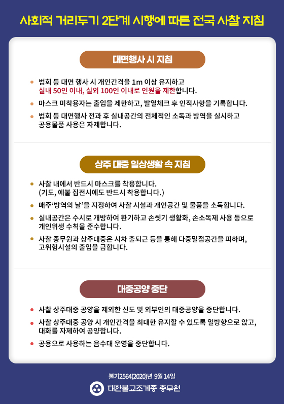 코로나19 확산방지를 위한 전국 사찰 추가 지침 안내